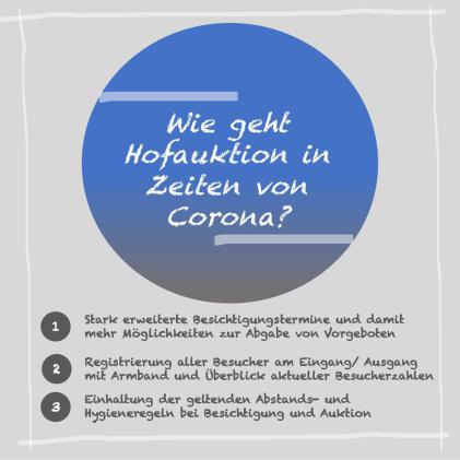 Wir bitten um Einhaltung der Corona-Schutzmaßnahmen und den Aufforderungen des Hofauktionsteams nachzukommen, um eine schöne